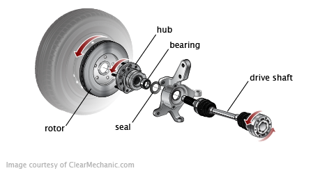 Wheel bearing Regardless of your car's age, it has front wheel bearings, which help with steering, and rear wheel bearings, which don't. Each wheel on your vehicle has its own wheel bearing, and problems could start with any one of them.